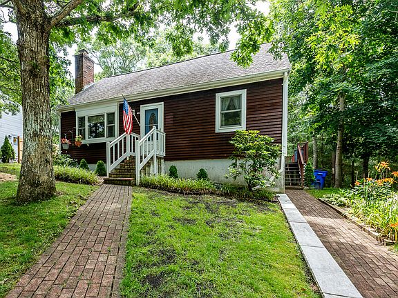 Monument Beach Cape is in excellent condition - Living room with FP insert, Cherry kitchen with Corian countertops and detached breakfast bar, formal dining room, (all with HW floors)and updated full bath on main level. 2nd level has primary bedroom, 2 addtl BRs (each with A/C split) and remodeled tiled shower bath. Finished family room, laundry and workshop in basement. Wraparound deck and storage shed in private rear yard. Driveway and walkway are well-designed with pavers. .75 mile to Monument Beach and Chester Park.