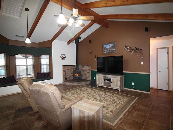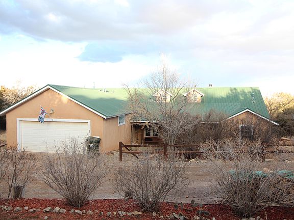A rare opportunity for a custom home in the East Mountains. Walk into this beauty and be greeted by vaulted ceilings with beautiful wood beams. The warmth of the wood stove invites you in, updated tile floors throughout with built in benches to enjoy the views. Gourmet kitchen with an island and plenty of cabinet space. Two ample bedrooms compliment the master suite with a jetted tub, separate shower, two walk in closets, and a deck off of the master bedroom with access to your private hot tub! Enjoy the outdoors of this beautiful lot with forever views of the Estancia Valley, walking trails throughout, storage sheds, RV parking, and an insulated 16x24 shop/home gym/home office, covered patio for outdoor living, and a fully fenced 2.9 acres! Make an appointment to view this home today!