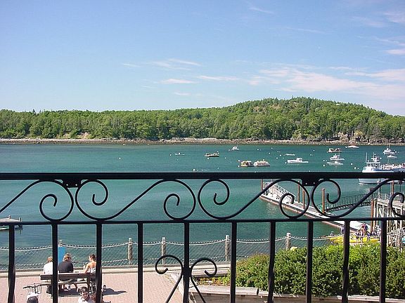 Our Cedar Chalet Maine waterfront home, located in Bar Harbor on Mount Desert Island Maine, sits high atop a hill overlooking Frenchman Bay. The main floor has a cathedral ceiling with two story glass windows overlooking the water. French doors lead to a large deck, perfect for relaxing and dining. This area provides spectacular views of the water during the day and especially at sunset. This home has been furnished as a vacation vacation rental property to accommodate up to eight people since 1999. A strong rental history and many repeat clients make this a great investment property as well as a primary home for those appreciating the Bar Harbor lifestyle and fabulous sunsets. The three story floor plan of this house offers spacious common areas while maintaining privacy for the sleeping quarters. There are three bedrooms, one on each floor, and 3 baths as well. The two separate living area, one on the main floor and one on the lower floor, offers flexibility for a family as well as for entertaining. Please call for information. Brenda Harp 813-334-1144