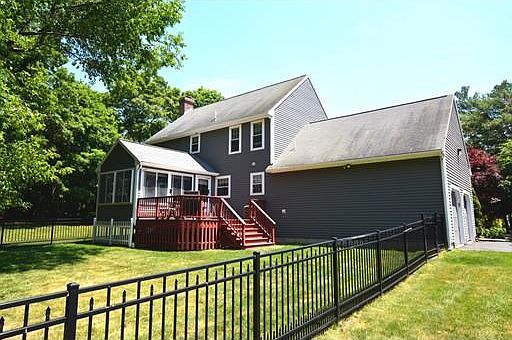 Location! Location! Location! This beautiful center entrance colonial sits on a 3/4 acre lot on a quiet cul-de-sac in a fabulous neighborhood. The open kitchen looks into a large living room with fireplace. The beautiful 3 Season porch, just off the kitchen, is perfect for relaxing and entertaining. Spacious master bedroom features a large walk in closet. Bathrooms have been recently renovated. Laundry is conveniently located just off the kitchen. Exterior was painted last summer. Replacement windows 5 years old. Solid hardwood floors 3 years old. Driveway seal coated last summer. Convenient to the train station. Walking distance to Wamsutta Middle School and Poncin Hewitt Field. Fenced in play area for pets or young children.