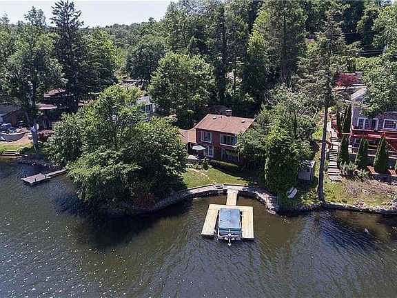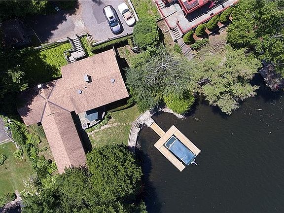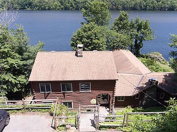 DIRECT WATERFRONT LAKESIDE You'll love this home with direct waterfront (no steps down to the water and your own private dock Swimming, boating, kayaking, water skiing - you'll be on vacation every day This 2 bedroom, 3 full bath house is warm and welcoming with beautiful wood beams, hardwood floors, 2 stunning stone fireplaces and a custom built vaulted ceiling in the dining area. Entertaining couldn't be easier with doors to the terrace off both the kitchen and living room for easy flow between indoor/outdoor spaces. A breezeway bridges the space between the doors with an 8' granite counter perfect for setting out a buffet or outdoor games. When it's time to relax nothing beats the view, which can easily be seen from all rooms: large windows in the family room, den, bedrooms and kitchen provide exceptional exposure to the lake. The master bathroom was specially designed to include granite counters large closets and heated floors A true luxury. The shed has electricity and can be used as a workshop, or storage space - lots of versatility It gets better There is no need for flood insurance here Two dams support this area of the lake so that the water never rises too high. Conveniently located off I84, this is an ideal location for a weekend or summer getaway, but is built as a year round home full of updated conveniences and comforts including central air. Be sure to watch the virtual tour for a drone video of the property