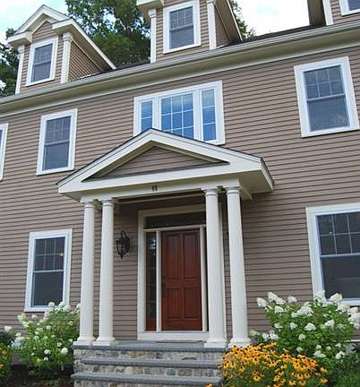Luxurious new Colonial beautifully framed by front stone wall, lush grounds and colorful plantings on a peaceful cul-de-sac street! Built by an accomplished local builder, this architecturally designed five bedroom home offers a graceful flow and custom finishes throughout. Beautifully stained floors with inlay border in the formal areas, distinctive custom millwork, spacious cook's kitchen with six-burner gas cooking, coffered living room ceiling, 1st floor study with built-ins, exquisite master suite and bath. Enjoy the comfortable family room with gas fireplace and built-ins and a wall of glass overlooking the deck and curved patio to a plush back yard abutting the golf course. Each bedroom has access to a full bath and the unfinished walk-up third floor and basement are pre-plumbed for full baths and future expansion needs. All of this and more in a coveted golf course neighborhood not far from the town center with bike path, neighborhood park and walking paths nearby!