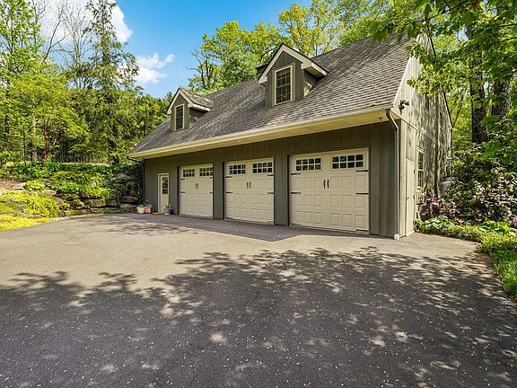 Nestled in Solebury Township, 46 Valley Road is an exceptional property that blends warmth, charm and modern convenience. This special property features 4 bedrooms, 3 full baths, 3 car garage perched on 1.9 acres that has been professionally landscaped and maintained. You’ll also find additional living quarters above the garage with another 2 bedrooms, 1 full bath, generous living areas and an outdoor patio for guests or family. Let’s take the tour through this one-of-a-kind property! Head up the driveway, you’ll notice a blend of Belgium block and bluestone, complemented by a charming carport. The lead walk and front porch continue with bluestone and a perfect setting to enjoy a summer beverage. Step inside to a grand foyer that opens to a cozy family room, highlighted by soaring vaulted ceilings, a stunning woodburning fireplace with a stone hearth, and an abundance of natural light. The formal dining room with breathtaking views out back, complete with French doors leading outdoors, is perfect for family gatherings and celebrations. At the heart of the home lies the updated kitchen, equipped with a spacious center island, stainless steel appliances, a wall oven, warming drawer, microwave, gas cooktop, and stylish tile backsplash. The double sink and additional prep area with a secondary sink cater to culinary enthusiasts. A breakfast nook with a bay window and outdoor access offers a charming spot for morning coffee. Down the hall, you'll find built-in cabinetry for a convenient drop zone, a full bath, a home office, and two generously sized bedrooms. In addition, you’ll find a versatile bonus room with vaulted ceilings, wood beams, windows on all sides, custom lighting and a separate entrance presents endless possibilities. Upstairs, a cozy reading nook offers a quiet escape before leading to the primary suite. This tranquil sanctuary boasts high ceilings, French doors opening to a private balcony overlooking your backyard oasis. The updated primary bathroom offers dual sinks, granite counters, a steam shower with a second large shower stall with frosted frameless glass. The 4th bedroom completes this level. The finished lower level includes a full bathroom, laundry area, and a converted garage space—now a fully equipped gym with mirrors, cabinetry, and durable flooring, ready to accommodate a variety of needs. Step into your own backyard paradise! The heated in-ground saltwater pool offers ample space for lounging and entertaining. A stylish cabana room provides a private outdoor retreat, while lush landscaping, an in-ground irrigation system, landscape lighting, and an outdoor sound system create the perfect ambiance for summer gatherings. The oversized 3 car detached garage (36’ deep x 40’ wide) with new epoxy flooring, heater, slat wall and cabinetry for all your storage & workshop needs. The apartment above, accessible from the garage or a private entrance, offers an open living area, dining space, office nook, and a kitchen with granite counters and stainless steel appliances and a laundry area. Located just moments from New Hope's vibrant downtown, enjoy easy access to boutique shops, renowned restaurants, and cultural attractions along the Delaware River. With its blend of timeless elegance and modern amenities, 46 Valley Road presents a unique opportunity to own a piece of New Hope's rich history while enjoying a contemporary lifestyle.