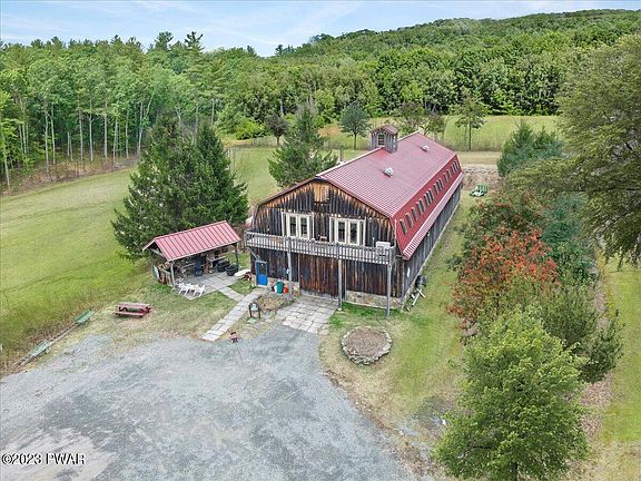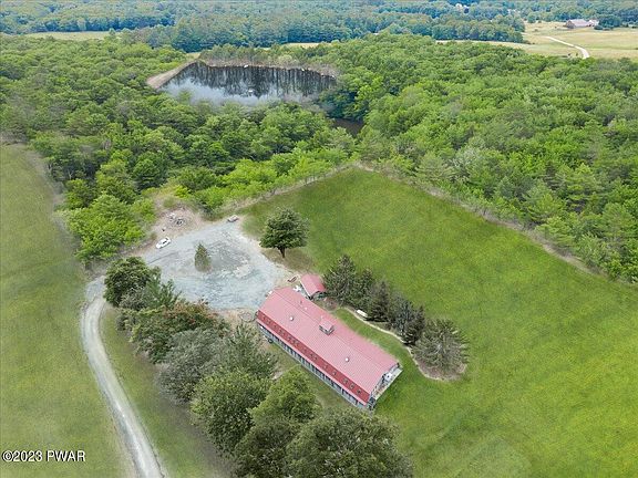 ENCHANTING 72 ACRE PRIVATE ESTATE, WITH AN 8500 SQUARE FOOT BARN STYLE YOGA RETREAT CENTER, 3 + ACRE SPRING FED POND, 7 BEDS & 5 BATHROOMS JUST MINUTES TO HISTORIC HONESDALE, PA! Level one offers 18 ft ceilings, expansive yoga/sauna rooms, 1 bed/1 bath & 2nd kitchen, along with 4-5 car garage perfect for expansion & storage. Level 2 is a large open living/dining area with beautiful kitchen, 6 large bedrooms & 3 full bathrooms. Your own spring fed pond is just down the path for swimming/fishing/fun. This estate offers endless possibilities just 15 min to the Delaware River, 10 min to Honesdale & 2.5 hours to the NY & Philly metro areas. Perfect for an event space, horseback riding, hiking, fishing, entertaining, ATVs and more! An amazing property like this rarely comes on the market!