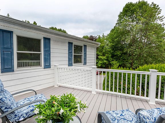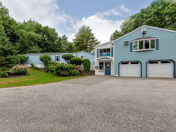 Unique and flexible 2 BR mobile with an attached 3 room+ office/flex space, an above-ground pool, a hot tub ( in need of service), 2 sheds for storage and many options Set on a landscaped 1 AC knoll with distant views of the Kennebec which improve seasonally. Very private and bordered by a Christmas tree farm.