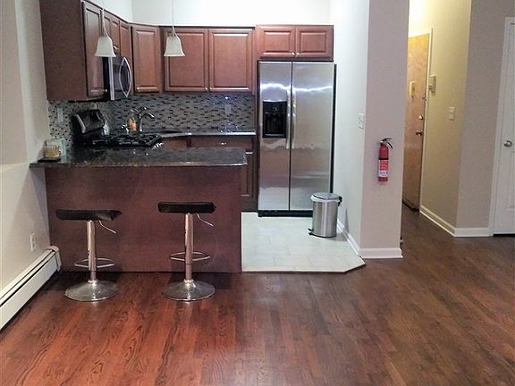 Just 2 blocks to the light rail station, this well laid-out Renovated corner unit has it all! Kitchen w/ granite counters & SS appliances, Living Rm/Dining Rm combo, terrace, hardwood floors, high ceilings w/ recessed lighting & crown molding, low maintenance fees, plus assigned end parking space. Updates include newer windows, electric panel & hot water heater. Centrally located close to shopping, public transportation & schools.
