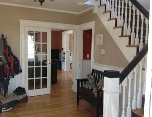 Delightfully renovated three bedroom colonial. Hardwoods throughout. Relax on the 26' wide front porch. Welcoming, open foyer~french glass doors to spacious living room~great flow through charming dining room with built-ins. Renovated kitchen with Ikea cabinets, granite counters, tile backsplash, recent appliances, mud room leads to new deck and spacious, partially fenced back yard . Adorable, bright playroom off foyer. Beautiful stairway leads to open foyer with office space. Three bedrooms; full bath recently updated. Converted oil to gas. Dynamic heating system offers incredible efficiency - takes bills to approx $1,100/yr. Hot water, furnace 6 yrs. young. Electric updated to 200 amp. Insulation. Call for appointment - Easy to show, but 24 hr notice appreciated~new baby!