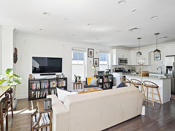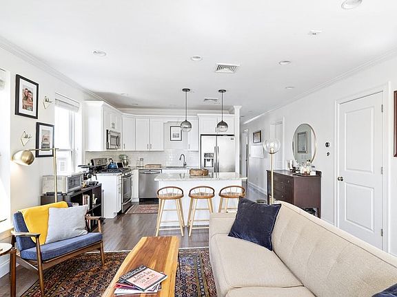 Luxury living in trendy East Boston! Welcome home to this newly built 2013 four-unit condo building perched high on Eagle Hill! Enjoy the warm natural light that fills the home as you enter through your living room with bay window and recessed lights. Hardwood floors flow seamlessly through your open concept living/dining/kitchen; featuring granite countertops, modern cabinets w/ crown molding, updated appliance package and breakfast bar! The 2nd bedroom has a custom closet and is flanked by a full bath complete w/ tub & in-unit full size washer/dryer. Escape down the hall to your generous master suite with walk in closet and full bath w/ tiled shower and glass door. Enjoy views of the water and the Tobin Bridge while you sip wine on your private balcony. Additional storage and an off-street parking space completes the package. Easy access to multiple blue line T stops. Close to grocery stores, new restaurants, parks and tunnel; just minutes from Downtown, call for your showing today!