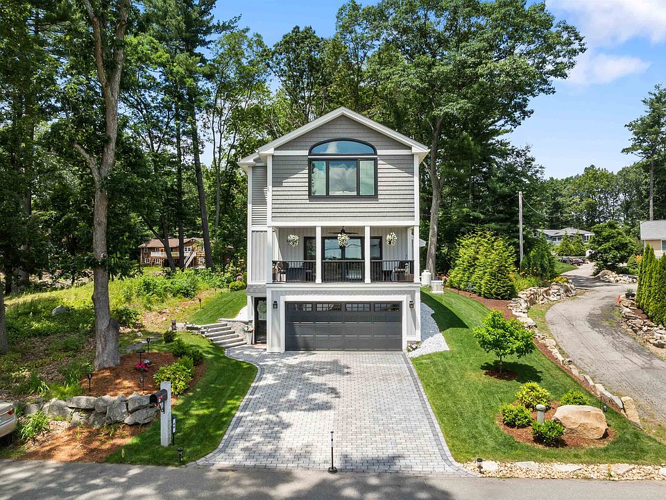 Welcome to this meticulously maintained, two-year-old gem with an open-concept layout connecting the kitchen, dining area, and living room—ideal for effortless living & entertaining. The chef-inspired kitchen features solid wood Kraftmaid cabinetry, Quartzite countertops, a stylish backsplash, and top-tier Café stainless steel appliances, including an impressive 8-burner stove with hood. The dining area flows into a spacious living room with a cozy gas fireplace and oversized sliders opening to a large composite deck with serene lake views. Both bedrooms are oversized primary suites offering ample space and luxury. The master suite boasts soaring 17-foot cathedral ceilings, an oversized window framing stunning lake views, granite countertops, double sink vanity, and a spa-like custom-tiled bath for a private retreat. Enjoy modern amenities such as recessed lighting, a Rinnai tankless water heater, and dual Rheem HVAC systems for year-round comfort. The home also includes an in-home two-car garage at ground level for convenient parking and storage. Outside a beautifully landscaped yard features a new paver patio ideal for relaxing and entertaining. The new permeable paver driveway enhances curb appeal with eco-friendly drainage. A Generac generator ensures reliable backup power. Numerous additional upgrades elevate style and functionality. Located just 45 minutes from Boston, this home offers peaceful lakeside living with easy city access. Schedule your private showing today!