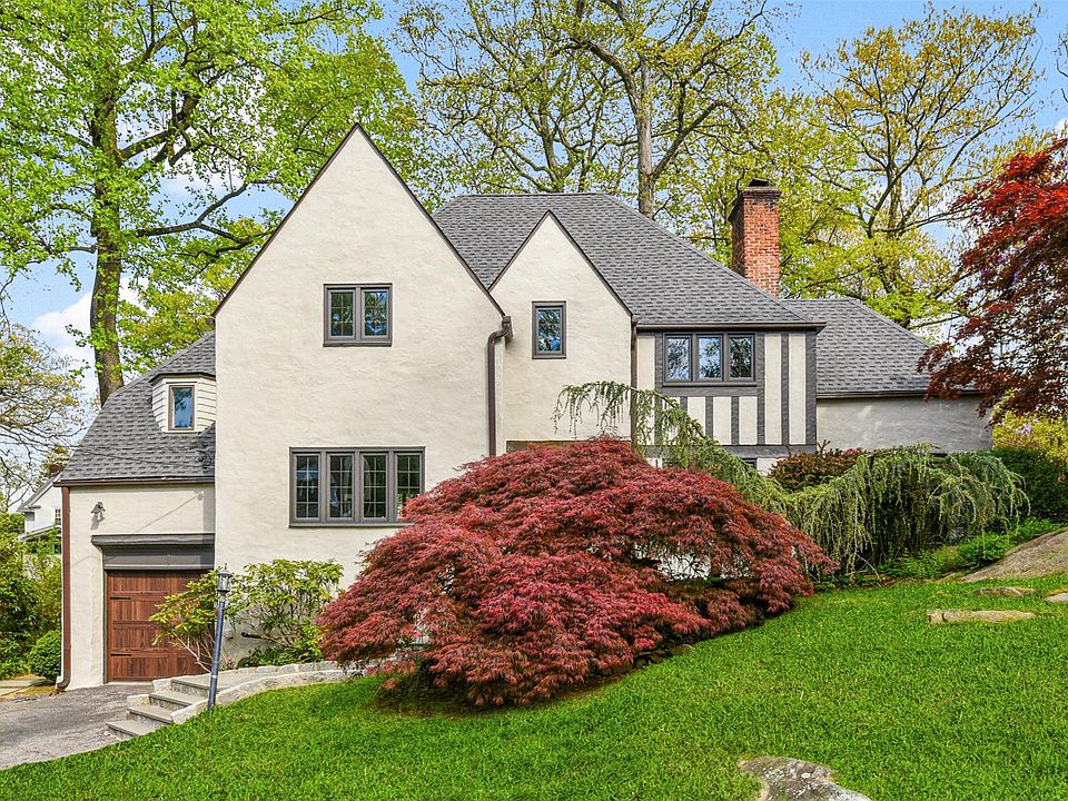 This move-in ready, sun-drenched 1920s Tudor blends old-world charm with luxury artistry and modern sophistication. Located on a peaceful, tree-lined street in the sought-after Old Edgemont neighborhood, it's a short walk to everywhere - all schools, the train station, shops, restaurants, the Bronx River walking trails and the duck pond. The first floor features a formal living room, a renovated chef's kitchen opens to the dining room, and a sunroom for relaxation. A few steps up from the kitchen, an ensuite bedroom is ideal for extended guests or an Au Pair. The second floor includes the primary bedroom suite, two additional bedrooms, and a hall bath. The top floor offers a bonus space for any need - currently being used as a luxurious home office - an oasis for work or for retreat. The spacious lower level provides a family room with a powder room for play, recreation or exercise. Outside, the park-like backyard with a wrap-around patio presents a serene space for both entertaining and relaxation. This designer home is located in the prestigious Edgemont school district, offering a perfect blend of elegance and convenience. New roof in 2024.