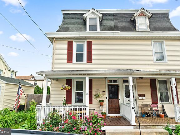 Welcome to 46 Walnut Street, a charming twin home located on a quiet, one way street, in the heart of Ambler Borough, just blocks from downtown and several parks. Here you will find three floors of living space, old world details like high ceilings and deep windowsills, a fantastic rear yard, air conditioning, and more! Greeting you is a beautifully landscaped garden bursting with roses, meadow sage, and soon to bloom lilies. The sweet front porch is perfect for relaxing and watching the world go by, and a key feature if you live in town. Take note of the blue ceiling, an old tradition that brings luck to the home ;). Inside you'll find high ceilings and oversized windows which bring in great natural light. The comfortable living room flows into a spacious dining room which allows plenty of room for dining and additional furniture. The dining room also offers built-ins and optional outside access. Beyond the dining room, you will find a recently updated kitchen that is as cute as can be. The kitchen was thoughtfully designed and boasts quartz countertops, stainless steel appliances, great storage space, the all important window over the sink, and gas cooking. An adorable covered porch is just off the kitchen, providing access to the fenced-in rear yard. Upstairs on the second floor, you will find two bright bedrooms and a full bathroom featuring a claw foot tub. Up another flight of stairs, the third floor offers two more bedrooms and hall closet. If you look out the rear third floor window, you’ll see the beautifully blooming catalpa tree, and just beyond that is a fabulous view of the Ambler Theater marquee. Talk about prime real estate! Down below, the basement offers plenty of storage, as well as the laundry area. This home has been loving cared for over the years and as summer approaches, you will no doubt appreciate the air conditioning throughout. Out back, the yard is fenced and private, offering a great space to enjoy, with room for gardening, as well. The outdoor space really is sweet at 46 Walnut, as both the front porch and private rear yard offer ideal spots to enjoy your morning coffee and also unwind at the end to the day. Living here is a dream, as everything is close by! Also, if you are looking to be less dependent on a car, this location easily fulfills that desire. Ambler offers a vibrant downtown boasting great restaurants, breweries, shops, annual festivals, a fabulous cooperative grocery store, easy access to the beautiful Green Ribbon Trail, and more. Speaking of festivals, this is THE place to be for the Ambler Arts & Music Festival, invite your friends and hear the music right from your own back yard! 46 Walnut Street provides the opportunity to live in the heart of it all, but have a nice quiet space to retreat to. The location is a commuters dream, walk to the train station or hop in your car and be on route 309 in minutes. Offering low taxes and renowned Wissahickon schools, this is an incredible value, one that is not to be missed! Come, live the good life in Ambler!