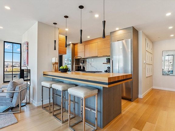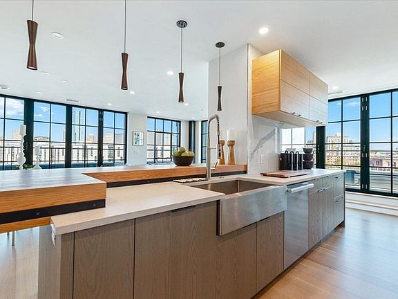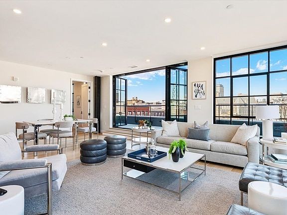 Modern Luxury, Views and Sunlight best describe the boutique homes at The Factory located in SOWA, South of Washington Arts & Design District in the South End of Boston. Penthouse 6A has commanding views of the Back Bay, Downtown, and Seaport. Step out onto the 438sqft terrace, it wraps the entire unit in glass with Nanawall door systems that opens the interior out to the city. This unit has 2 full bedrooms, plus a study and 2 full bathrooms, carved out in a seamlessly designed floor plan that wastes no space. Custom millwork, luxury appliances, and modern fixtures are immediately noticed throughout the unit. Building amenities include a fabulous landscaped roof deck with built-in kitchens, a fire pit and custom lighting & seating. Additionally, there’s a rooftop fitness room, dog washing station, on-site professional daycare services, garage parking, professional management, and concierge services, all within arms distance to local restaurants, eateries, shopping, and art galleries.