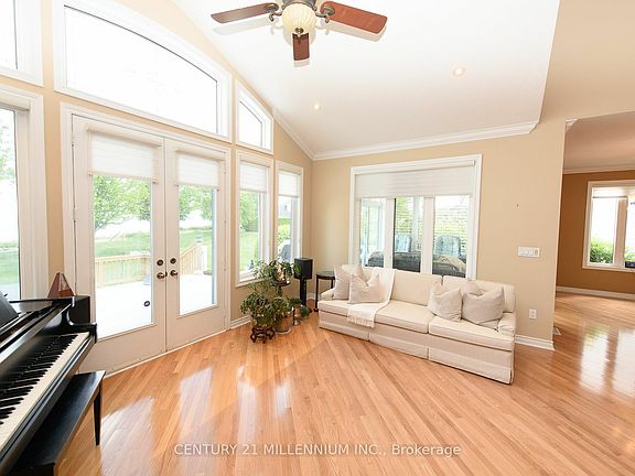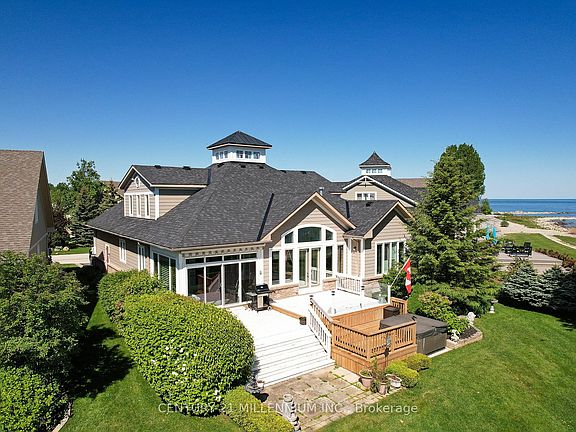 WATERFRONT HOME IN BLUE SHORES! Spectacular Waterfront Views: Immerse yourself in breathtaking views of Georgian Bay. Open Concept Living: Step inside to discover an inviting open-concept floor plan, featuring vaulted ceilings, hardwood floors, and floor-to-ceiling windows that flood the space with natural light and showcase the stunning views of Georgian Bay. Active Lifestyle Community: Dive into the vibrant community of Blue Shores, with two pools, pickle ball courts, 'Shore Club' community centre, boat launch and miles of walking trails, providing endless opportunities for leisure and recreation. Muskoka Room: Retreat to the Muskoka room, a tranquil space where you can unwind and enjoy the beauty of the outdoors in comfort and style. Spacious Bedrooms & Baths: With four bedrooms and four and a half baths, including two main floor bedrooms with ensuites, this home offers ample space and privacy for family and guests. Stylish Kitchen: The stylish kitchen features granite countertops, a breakfast bar, and modern appliances, making it a perfect space for culinary adventures and entertaining. Cozy Fireplaces: Stay warm and cozy on chilly evenings with two gas fireplaces, adding a touch of elegance and comfort to the living spaces. Fully Finished Lower Level: The fully finished lower level offers a fourth bedroom and bath, along with a games room, home gym, bar, and rec room, providing endless possibilities for relaxation and entertainment. Resort-Style Living: Nestled in the coveted enclave of Blue Shores, this inviting raised bungalow offers resort-style living at its finest, with exceptional amenities and meticulously maintained grounds. Convenience & Leisure: As a resident of Blue Shores, enjoy the ease of ownership with lawn maintenance and snow removal included. The Shore Club offers tennis, pickle ball, indoor & outdoor swimming pools, and clubhouse events, providing opportunities to socialize with neighbors and create lasting memories.