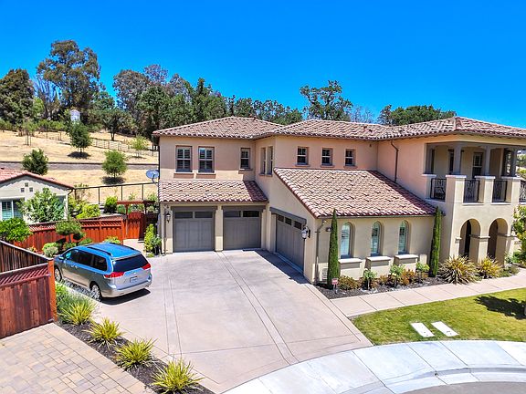 Stunning in Matadera! Main residence features 5 bedrooms (one on first floor), office, 4 and 1/2 baths. Separate, approx. 450 sq ft guest house with living room, kitchen and bedroom. Court setting offers privacy and views of Mt. Diablo. Rich design details include arched doorways, custom wrought iron staircase, travertine flooring, plantation shutters and dramatic wood beam ceiling. Kitchen features an abundance of cabinetry, granite counters, huge center island and stainless steel appliances. Master suite with fireplace, dual closets, designer tile & granite, soaking tub and spa size shower. Spacious secondary bedrooms. Backyard will take your breath away! Professionally landscape grounds are amazing with multiple fruit trees and colorful gardens. Highlighted by a pergola covered entertainment area, large patio dining spaces and play area, the entertainment opportunities are endless! Ideally located on a quiet cul-de-sac, near award winning schools and close to downtown Danville.