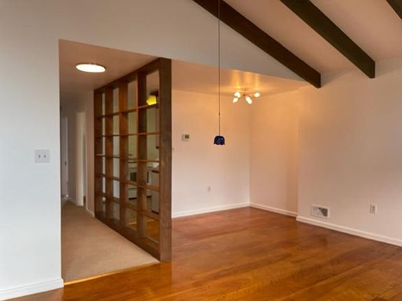 Freshly painted and spacious 2 bedroom 1 1/2 bath condo located on beautiful Westmoreland Street within walking distance of downtown pubs, breweries, restaurants and shopping! Also within walking distance of King's Park! One of Westminster's premier historic streets - highly sought after area! This luxury condo has so many beautiful qualities with it's architectural design. Upon entering this condo you are greeted by a wide open staircase with a powder room at entry level. You are greeted by a subtle divide that is open dividing the kitchen and dining areas from the hallway. The kitchen is a 70's contemporary style with original painted wood cabinets with it's original brass hardware. The kitchen includes a gas stove and refrigerator. The linoleum is also 70's style with a stone-like pattern. The counter is the same era laminate. Plenty of cabinet and counter space! The living room area is a wide open floor plan with stanchion beams in the high vaulted ceilings. A ceiling fan will generate nice air flow and matches the decorative wood stove (not for use). There are lots of windows allowing streams of sunlight to enter this magnificent space enhancing the beauty of the original wide plank oak peg flooring! What an amazing space for entertaining! The living room flows into the dining area with new brilliant lighting enhanced with Edison bulbs. A closet area off the hallway has a stackable/washer and dryer. The hallway flows into the Primary bedroom which is of ample size to accommodate up to a king-sized bed. This bedroom has newer, neutral tan carpet which is very plush. The closet doors are slatted and made of solid wood entering the walk-in closets in both bedrooms. The secondary bedroom is a nice size with original oak flooring. The full bath is unique and inviting with the original mint tub and toilet which are in pristine condition! The Palladian window in the bathroom adds to the architectural character of this condo. The vanity is a darker colored wood base matching the shelving behind the toilet. The walls are tiled midway up the wall and the rest is wallpapered pulling the design of this retro 70's bathroom. The floors are tiled as well and in perfect condition! There is a linen closet off the bathroom hallway and another storage cubby at the end of the hall. This unit has gas stove, hot water heater and gas heat. Also, central air conditioning. The outside of this condo is made of the original brick and there is a concrete sidewalk taking you to the rear of this condo with a private brick patio area. There is street and off street parking and a small storage shed in the rear of the rental unit. This is an amazing one of a kind rental on distinguished Westmoreland Street - its a true gem and a rare find! A must come see! $1,575.00 per month $1,575.00 security deposit Tenant pays BGE, water and sewer. Owner includes trash. Owner may allow a small cat or dog at their discretion. An additional pet deposit would be paid for any small pet. No large pets allowed. Application fee required. Owner pays for trash. Tenant pays BGE, water and sewer. There are two condos at this location. The lawn and flowerbeds are a shared responsibility to maintain this space. Tenants are to shovel their own walkways and parking area. NO SMOKING ALLOWED PLEASE! NO large dogs. Owner may allow one small dog or cat at their discretion with an additional pet deposit. Street and off street parking.