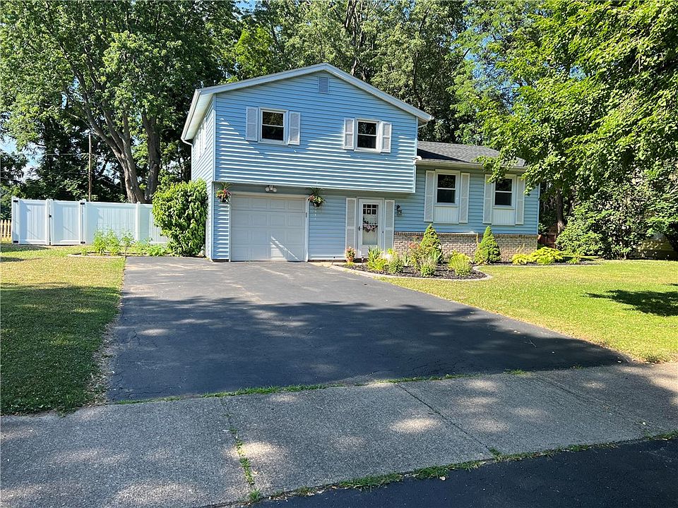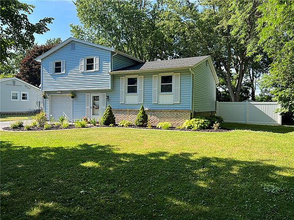 Don't miss this beautiful split level home in a quiet neighborhood in Gates with Spencerport schools. Many updates include hot water tank & electrical box (2023). Vinyl fencing (2022), stamped concrete patio (2018), central air (2022), windows (2020), and roof-lower 2016 & upper 2014. All ductwork cleaned 2021. Walk out lower level sliding glass doors to the patio and fully fenced backyard which backs up to acres of open land. Also there is a large shed with electric for extra storage. Delayed negotiations till 12-11-23 at 1PM. Open house Saturday 12-9-23 from noon till 2PM.