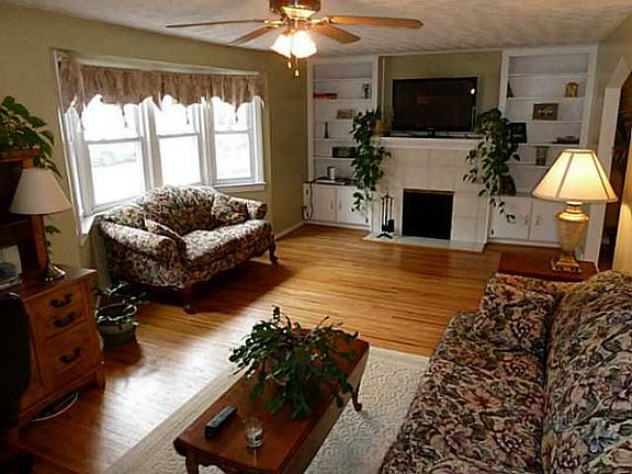 Great colonial with many updates! Tons of charm in the living room with oak hardwood floors, artificial fireplace and built in bookshelves! Dining room with oak hardwoods! Eat in kitchen with all appliances! Sunroom with tile floor and vaulted ceiling! 2 bedrooms upstairs with hardwood floors! Newer roof (2005 +/-). Newer driveway! 2 car garage with new doors! Fenced rear yard! Professionally landscaped!