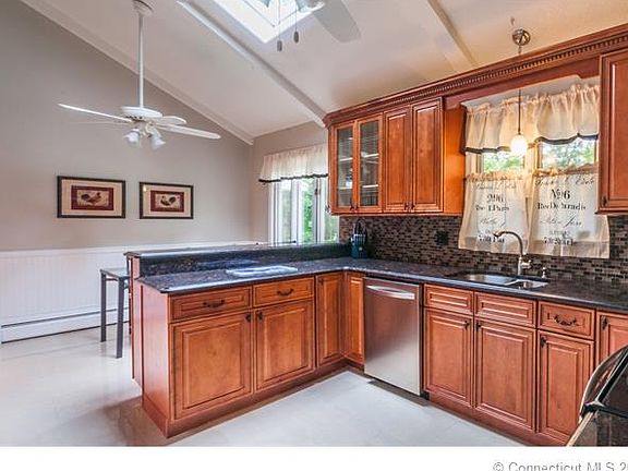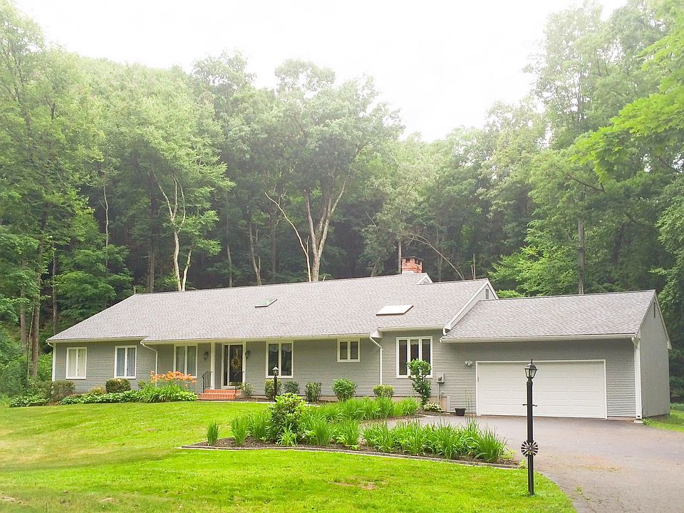 Prime location convenient to shopping and top rated schools, yet private and set back on over 1 acre lot. This special home has the wow factor! 4 bedroom, 3 bath ranch w/full basement and attached oversized 2-car garage. Main floor offers 3,000 sq feet of living space w/heated sunroom for easy living all on one level. Remodeled eat in kitchen featuring granite counters, gourmet cabinets, breakfast & wine bar with built ins, double pantry, and stainless steel appliances. Other features include voluminous cathedral ceilings, new thermopane skylights, new lifetime GAF roof with six ft of ice protection, new lighting, hardwood floors, new energy star washer and dryer, new gutters, new insulated doors, new insulated garage door, new paint in and out, new septic, updated bathrooms, new lifetime storage shed, new Rheem water heater, new Trane Central Air and more! This home is energy efficient, has had an energy audit and is consistently ranked as one of the most efficient homes in the neighborhood. Oversized master bedroom suite makes a king sized bed look tiny and has a walk in closet. Big rec room w/wood burning stove in basement. Second fireplace on main level family room w/ floor to vaulted ceiling brick. Spacious deck overlooking scenic view. Huge sunroom stretching across the back of the house with newer carpet. Beautiful private yard and professional landscaping. A truly exceptional home and move in ready!