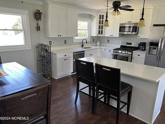 Get ready to unpack in this custom-finished, renovated split-level home that has been meticulously maintained. Located short distant from houses of worship. Every room has been professionally designed with custom finishes, from the large open main floor to the custom kitchen featuring white shaker cabinets, quartz counters, and stainless steel appliances. The house was converted from a 4-bedroom to a 3-bedroom to make space for a huge master suite with a Jack and Jill marble bath and a large sitting or workout area. The first floor includes a large inviting foyer, a bedroom, and a family room that leads to a spacious rear patio. The full finished basement adds living space. The garage has been professionally finished with epoxy floors, pull-down attic storage, and a rear yard entrance. Get ready to unpack in this custom-finished, renovated split-level home that has been meticulously maintained. Every room has been professionally designed with custom finishes, from the large open main floor to the custom kitchen featuring white shaker cabinets, quartz counters, and stainless steel appliances. The house was converted from a 4-bedroom to a 3-bedroom to make space for a huge master suite with a Jack and Jill marble bath and a large sitting or workout area. The first floor includes a large inviting foyer, a bedroom, and a family room that leads to a spacious rear patio. The full finished basement adds approximately 240 square feet of living space. The garage has been professionally finished with epoxy floors, pull-down attic storage, and a rear yard entrance. The home is situated on a large flat parcel with a sprinkler system and a fully fenced yard.