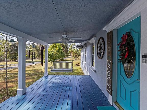 Discover true country living just minutes from town on this fully fenced 2.5 acre property in desirable Naples. A long paved driveway welcomes you home to a charming 4-bedroom, 2- bath residence featuring a classic front porch swing, mature shade trees, and peaceful privacy acreage living provides. This property is beautifully set among majestic oaks, fruit trees, and open green space- ideal for anyone seeking room to breathe, grow, and enjoy outdoor living. With 3 separate decks, you'll have the perfect spots for morning coffee, evening relaxation, and entertaining. The large yard also includes a fire pit area, chicken coop, RV hook up, concrete slab for boat/ RV, and plenty of room to add a pool or build a second home. An electric gated entrance with remote access adds convenience and security. Inside, the family room centers around a cozy fireplace, creating a warm, welcoming space for gatherings. This acreage property offers freedom to have horses, chickens, gardens, or recreational toys- a lifestyle rarely found this close to town. Whether you're looking for tranquility, space, or future expansion, the possibilities here are truly endless.