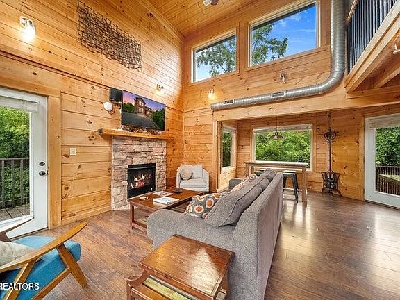 MOTIVATED SELLER. Looking for 1 more property to add to your portfolio by the end of the year? This property will make well over $100K this year. Amazing short-term rental investment opportunity just minutes from all the attractions of Pigeon Forge and Gatlinburg. This cabin offers 2 bedrooms, 2.5 bathrooms and plenty of space for relaxing and entertaining. The kitchen boasts a central island complete with butler's sink, which is the perfect space for socializing and culinary adventures. Revel in the secluded in-ground pool and game room on the lower level or soak your cares away in the hot tub from the lower-level porch. The game room offers lively entertainment options, including a ping pong table and an arcade game. The resort offers a community pool, picnic pavilion, and a scenic walking path along a babbling spring. In addition to the $166 monthly HOA fee, there is an additional $32 per month for community internet/cable through Xfinity. Actively on a STR program, it will be sold fully furnished with an acceptable offer. Whether you are looking for a personal retreat in the mountains or a lucrative addition to your vacation rental portfolio, this beauty presents the perfect opportunity for you. All information is deemed reliable, but not guaranteed. Buyer to verify square footage and all other pertinent information.