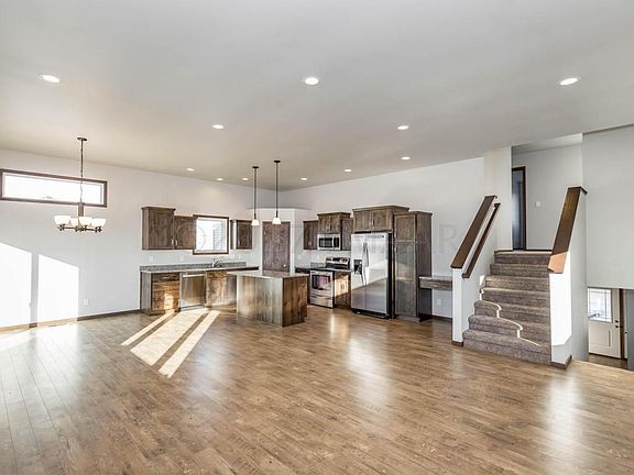 Beautiful new home in Kindred featuring 4 beds, 3 baths & 3 stall garage! Great open floor plan with knotty alder custom cabinets, granite counters & stainless steel appliances. Upper floor has a large master suite w/walk in closet & private 3/4 bath w/double sinks & walk in shower, as well as 2 additional bedrooms, full bath and laundry. The 3 car garage has a floor drain, is insulated, sheetrocked and is roughed in for a heater. Blocks from Kindred Public School, parks & pool! 2 year tax abatement available.