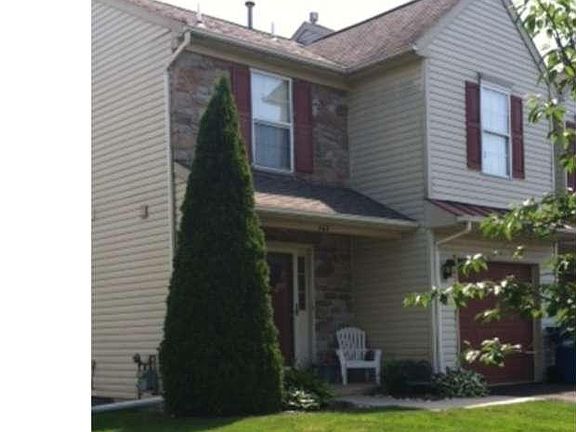 Don't let this one get away, end outer unit located in picturesque Banbury located in Franconia Township and backs up to an open cornfield. This end unit has a cute front porch, walk in though the front door to a double coast closet and 1/2 bath, walk down the hall to a well landed out kitchen with open counter to dining room with sliding glass doors to back patio, living room open to dining room. Walk up the stairs to a open hallway with a oversized closet for storage, master bedroom with walk in closet, double vanity and bathroom, two additional bedrooms with ample closet and hall bath. Full dry basement could be finished for additional room, rec room or man cave. One car garage attached.