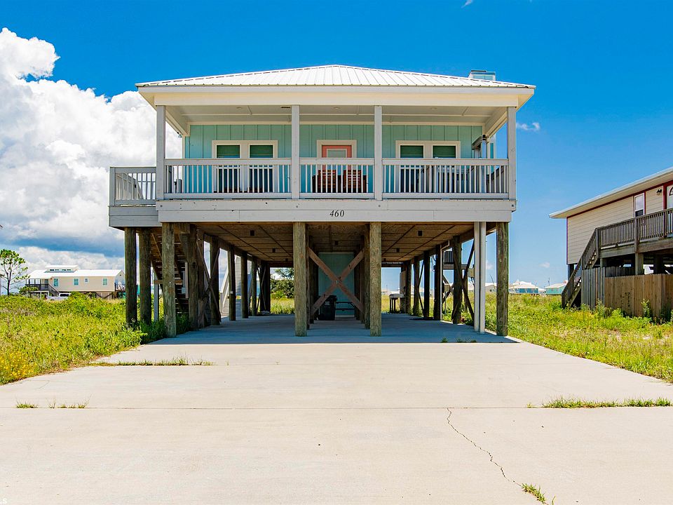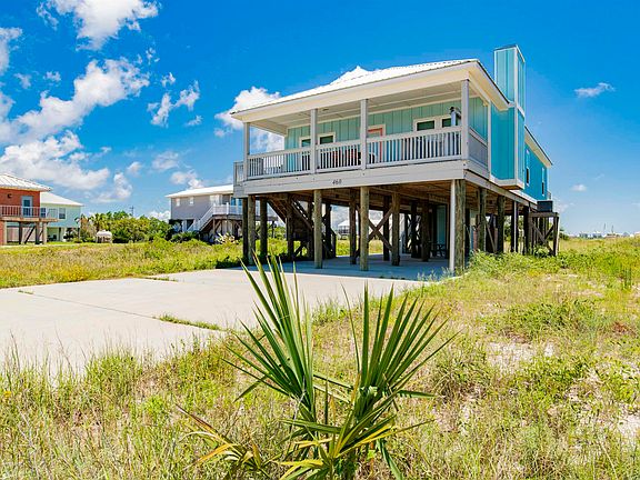 Beautiful Custom-Built Raised Beach House completed in 2019. This 4-bedroom 3-bath home is just steps away from the beach. The owners have thought of everything! From wood tile throughout, granite throughout, stainless steel appliances which convey, metal roof, Gold Fortified Certified, freight elevator, 300 sq/ft front deck with views of the Gulf, 210 sq/ft back deck engineered to support a hot tub complete with electric & water hookup, RV power hookup with 30Amp/125Volt, ground floor private outdoor shower and fish cleaning station, ground floor storage shed, wired for security system. In addition to the laundry room there is also a small room used for storage but could fit a desk for a home office or double as a large closet. More info uploaded in Docs Section. This Custom-Built Gold Fortified Raised Beach House is a gem that will not last long!