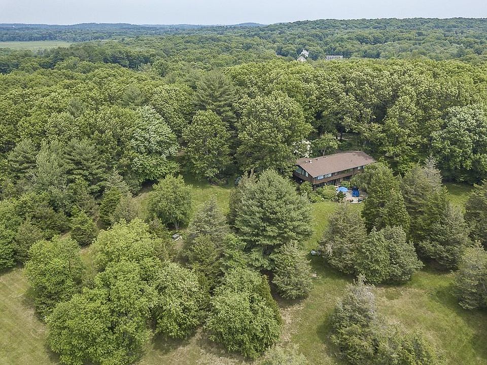 A modern design dream! Tucked amongst 6+ acres and down a private drive is this gracious, fully remodeled contemporary Deck House. Exuding modern elegance, this rare offering features a 4500+sf, open airy floor plan with 4 fireplaces, an abundance of natural light and landscape views from every room. Completely renovated by design/build firm Lee Kimball in 2019, this home features a state-of-the-art chef's kitchen with double Wolf convection ovens, six-burner Wolf gas range, and double Bosch dishwashers, plus white quartz countertops and an extraordinary handmade glass tile backsplash. This exceptional home also features beautifully remodeled bathrooms, all new flooring and stunning contemporary lighting. A soaring glass foyer opens into the mahogany-paneled dining room. The oversized, cathedral ceiling living room features a stone fireplace, wet bar with Sub Zero fridge and Bosch dishwasher, and wide glass doors that open onto an expansive deck overlooking the scenic property. 2nd floor offers a master suite with spa-like marble bath and steam shower plus 3 large bedrooms and 2 full bathrooms. The finished lower level with full bath has many options including family room, playroom or au pair/in-law suite. An inviting courtyard, bluestone patio, 3-car garage and large mudroom complement this home. Ideal for entertaining, this beautiful, completely remodeled home in an estate setting in the heart of Hamilton is not to be missed.