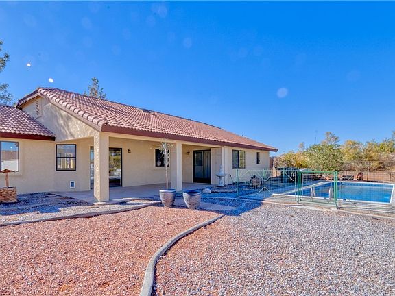 Pahrump. Front yard professionally landscaped. Backyard fully fenced, oversized two car garage, tile floors throughout and new carpet in the bedrooms. Beautiful views of Mt. Charleston from the swimming pool. Perfect large covered patio out back for BBQ's. Full RV hook-up. Submit all reasonable offers....