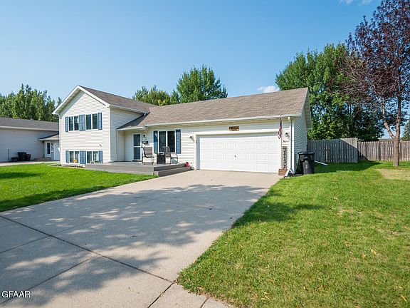 Great 5 Bedroom 2 Bathroom home tucked into quiet location convenient to UND and GFAFB. This home has been extremely well kept and is ready for you to move right in and enjoy. Check out the huge back yard with patio, firepit area, and play area; attached heated garage, maintenance free porch, and nice layout with three bedrooms and full bath with heated floors upstairs,