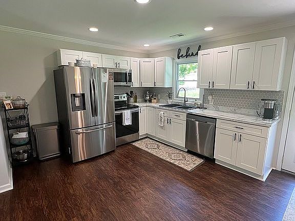The home features 3 bedroom, 2 bathrooms that sit on 1.36 acres with beautiful Catbird Creek running through the property.