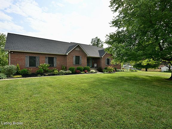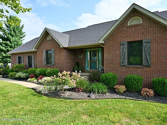Welcome home to this beautiful and peaceful all brick ranch, that includes a walk-out basement. This gorgeous home sits on 3.96 acres of land. Walk in to the open floor plan and take notice of the updated kitchen. The Kitchen is a chef's dream, quartzite countertops, an abundance of cabinets, a gas stove, and a pot filler! Check out the shelving in the bedroom closets, as they stay with the home. The completely renovated primary bath is a must-see. The basement includes the massive fourth bedroom, a full bath, a spacious family room, and a non-conforming fifth bedroom. You can enjoy the spectacular landscape, including apple trees, on the newly renovated deck and on the covered patio. There is a two car garage with a parking area for up to eight cars.