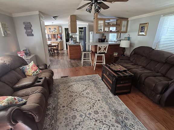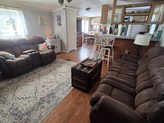 Country living at its finest!! Secluded 3 acres+- comes with this nice, 3 bedrooms, 2 bath manufactured home. Has a huge, covered deck on back and front porch on the front. Laminate hardwood flooring and tile throughout. Kitchen with island and all appliances remain. Plenty of trees and space for entertaining or for the kids and pets.