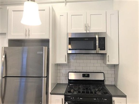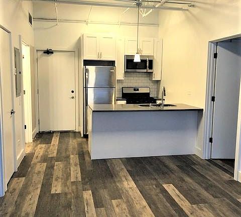 Chicago style living available in the Suburbs. Two bedroom, two bathroom industrial loft style luxury condo features high open ceilings, porcelain tile floors throughout, quartz countertops, stainless steel appliances and a in unit laundry. Don't miss out on this opportunity to live in the most convenient location just off of Route 14 walking distance to several retail stores. This is a pet friendly complex that has an outside garden area for relaxing. A birdwatchers delight with several birdfeeders hanging on the trees drawing in all types of birds. Come bring your feeders and add them to the collection. If the birds are not enough then watch the squirrels who like to sit on their chair where they feed on the corn cobs or nuts. A very relaxing setting. There is an additional bundle fee of $25 on top of the rent which includes unlimited water, trash removal and parking. Tenant occupied - requires notice and confirmation. Photos are from prior the current tenants. May 1st occupancy available. 1 year lease required. One time $250 non refundable pet fee/per pet. $25/mo. pet rent per pet. 650 Credit score or better, income 2 1/2 times the rent.