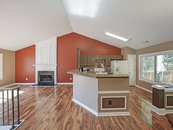 Romantic fireplaceNew deckOpen floorplanNew custom windowsGorgeous floorsNew guttersUpgraded tiled showers