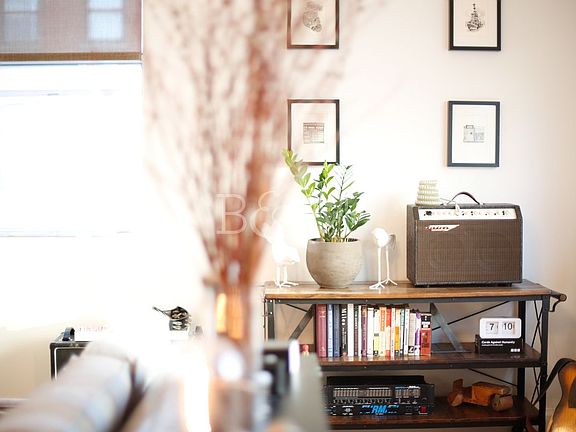 This quintessential Brooklyn loft is the best in it's building. Positioned on the corner, the loft benefits from several windows facing 2 different exposures in the grand living space. As you may imagine, the interior is very well lit with natural sunlight. The livingroom is massive, and easily fits your arrangement of furnishings that can include a large livingroom set up, with dining table and desk. The ceiling is high, sporting large walls perfect for large wall art. The bedroom is a great size, fitting a king sized bed and dressers. This home has been extremely updated compared to neighboring lofts within the building. Updates include custom lighting throughout, including a Great Gatsby'esque' brass gold globe pendent, tasteful neutral wallpaper through the hallway, creative/fun wallpaper in the bathroom, new mirror with more storage, custom California style built out closets, and custom solar shades. To boot, this home has an incredible amount of overhead storage, certainly larger then most storage units found in condo buildings. The location is hard to beat. Below the lofts are a Khims marketplace that NEVER CLOSES (it didn't even close through Sandy), McCarren Park is your view, the Bedford L AND Lorimer L/G are just a few minutes away. We love this home. You will too! Utilities paid by tenants Laundry in building