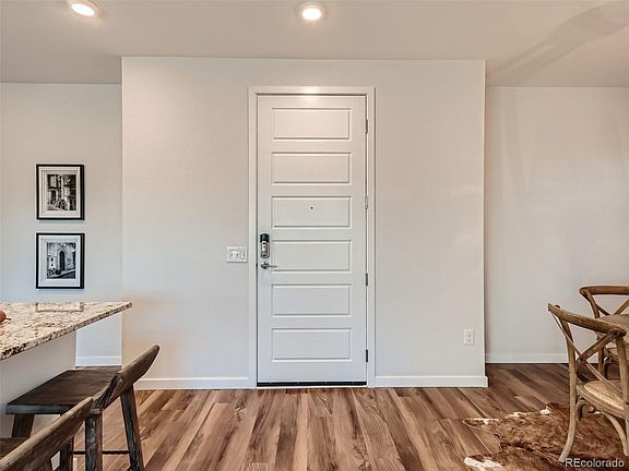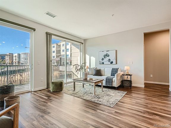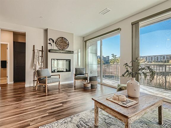 LARGE CORNER/END UNIT in the highly sought after Littleton Village! This unit is a 2 bedroom, 2 bathroom features 9' ceilings throughout and a split layout for privacy with an additional den that can be used as a formal dining room, office, or second living room. Large primary suite with a double vanity and extra large shower. Continue to the spacious walk-in closet connecting to the laundry room for easy access. In the laundry room you'll find custom cabinets for storage. Open floor plan with large chef's kitchen featuring a large island with granite countertops and Whirlpool stainless steel appliances. Granite counters can be found throughout the unit including both bathrooms. Living room has custom shades and a custom fireplace that can emit heat or not and you can pick custom colors perfect for game day! Seller has been the sole occupant of the unit, has kept the home in pristine condition and recently had the home repainted. Off the living room you have access to an extended balcony. Unit is south facing and gets lots of natural light and overlooks the park. Builders have added smart home features including locks, thermostat, and lights that buyers will have access to. Gym and rooftop deck with grills and a fire pit are located in the same building right up the stairs or elevator. The secure, climate controlled parking garage is where the deeded parking spot will be located along with bike storage. Pets are always welcome with a convenient dog run located right across the street! Park and playground are also across the street making it easy to get some fresh air. Additional parking and parking for guests in the parking lot right outside the unit for convenience. EV charges can also be found in the parking lot. Walking distance to Starbucks, Culver's, a new bar coming soon and minutes from The Streets at SouthGlenn and Chatfield Reservoir! Located minutes from downtown Littleton with easy access to DTC, Denver, and C470.