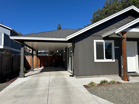 Charming new house in the heart of old Benicia. House is 750 square feet and has two bedrooms, 1 bath with tub/shower, new kitchen with deluxe finishes, covered carport and private fenced yard with patio. Solar-powered central heat and AC and in-unit laundry. Short walk to First Street shops and Marina. Gas/electric and water included in rental- only utility not covered is trash collection. Dogs under 25 pounds may be allowed with extra pet deposit. Owners live on-site in separate unit with separate yard. Minimum one-year lease required. No smoking of any kind. Respectful behavior in quiet residential neighborhood expected. Small dogs under 25 pounds may be allowed. No parking of trailers, RVs, boats or stationary work equipment onsite. Tenant is responsible for trash/recycling/composting services with City of Benicia contractor (Republic Services). Applicants will be expected to file an application and pay an application fee through third-party site.