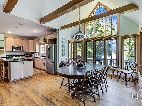 Motivated Seller says bring us your offer and then you get to Enjoy the best scenic view of Timber Lake as soon as you walk in the front door of this expansive brick ranch home. The main level is light and airy with massive windows, vaulted ceilings, exposed beams, hardwood floors, ceiling fans, and a desirable open floor plan. The spacious living room features a fireplace, a wall of stacked windows, glass doors to the deck, and is open to the kitchen. The formal dining room has a wall of windows looking out at the pretty front landscape. In the kitchen are abundant cabinets, granite counters, large island, double ovens and a huge vaulted breakfast room with floor-to-ceiling windows overlooking the lake and glass doors accessing the deck. The sunny first floor laundry room has a sink, cabinets & counter, and access the the powder room. There are two big bedrooms on the main level. The primary suite is an oasis of comfort with light-filled bedroom, two huge walk-in closets, private deck, and spa-like bath with two vanities, soaking tub and separate shower. The other main floor bedroom has a beautiful bay window overlooking the front yard and an adjacent full bath. The walk-out basement, remodeled in 2018, gives you another entire level of living space with hardwood flooring, light-filled rooms, and private exterior access. The spacious family room has a bank of glass doors out to the patio and is open to the 2nd kitchen/bar. 2 big bedrooms (one with attached sitting room), ample closets, full bath, office and den (or two more bedrooms!) make this the ideal in-law arrangement. Timber Lake offers outstanding fishing (electric motor only) for bass, northern and pan fish, and has a wonderful beach for you to enjoy. Convenient to all the shopping, dining and entertainment in Lake Zurich and Wauconda, 10 minutes from downtown Barrington. Don't miss this amazing opportunity!