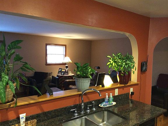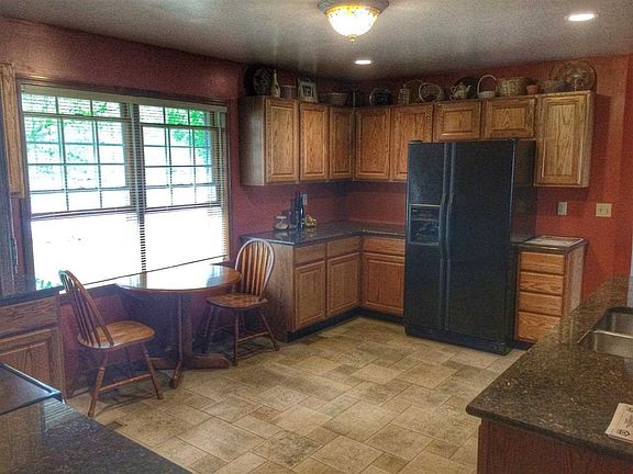4 bedroom,very clean and neat full brick ranch with finished walkout basement situated on 2.5 acres. Kitchen has granite countertops, open arches to the main living room, formal dining room, hardwood floors throughout main floor. Master suite has large walk-in closet and full bath with tile floors.2 other large bedrooms on the 1 st floor with an updated hall bath, Large finished walk out basement with kitchen area, full bath, large family room with gas log Fireplace , and rec room with enough space for pool table, basement also has 4th bedroom, work shop, and additional storage. Acreage is fenced with a well manicured yard and fruit trees. ** Signage is on Main St to direct to the home, it is not on the property of this home, the ground for this home has an approximate property market after the tree before the driveway**