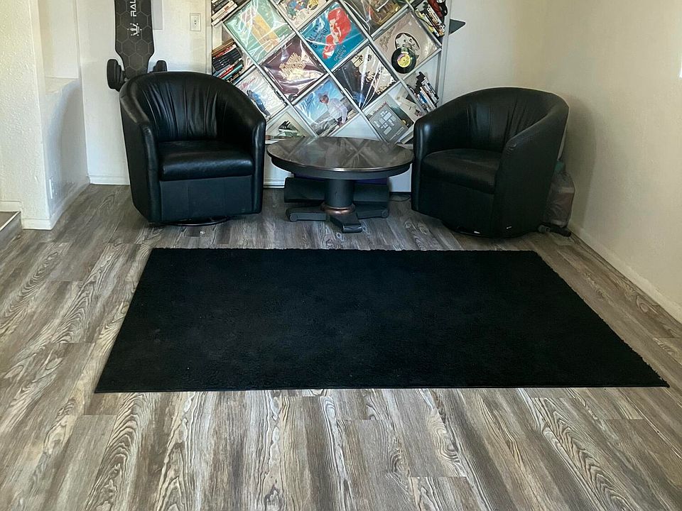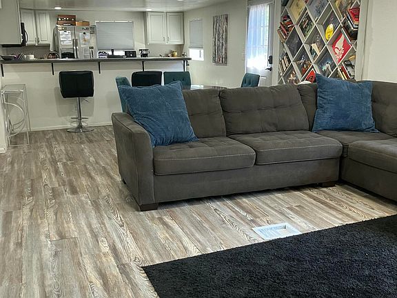 Welcome to your new home. This home was remodeled in 2020, new flooring, paint, bathroom toilets, vanities, duct work and a shed turned into a man cave/office. This open floor plan offers 2 good size bedrooms, 2 bathrooms, nice kitchen with plenty of storage, white cabinets and open to the family room. The master bedroom has a large closet and sitting area for reading and relaxing. The fenced backyard has artificial turf, outdoor fireplace and seating area. Plenty of shade and a storage shed. Separate Mancave/office is a nice hideaway in the back of the home. French doors, tv, right outside is the BBq area The home also has an evap cooler and a solar panel, plenty of parking in the front. Owner has a real estate license and is related to the listing
