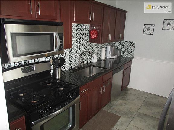 Great Bungalow close to downtown Olathe, upgrades include granite counter, stainless steel, gas range, mosaic tile backsplash, 16" tile in kitchen, delta faucet, touch to turn on/off. Hardwoods in living, bedrooms, and hallway. Tile bathroom, huge storage cabinet. Smart thermostat remote access, control with smart phone, tablet or other wi-fi device. Detached Single Car garage has lots of storage room, fenced back yard, walk from the screened porch down to the patio.