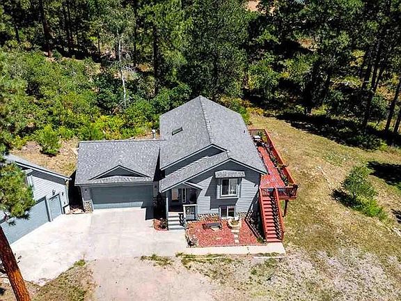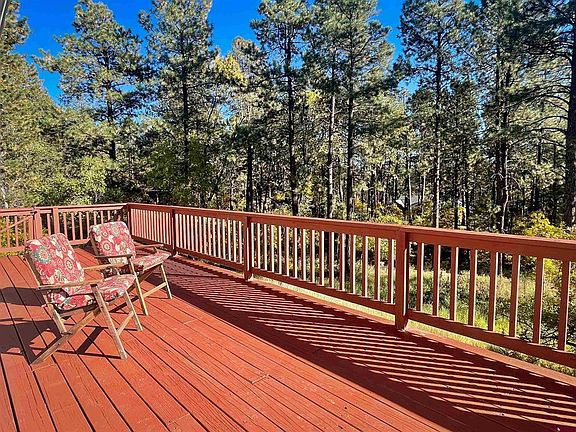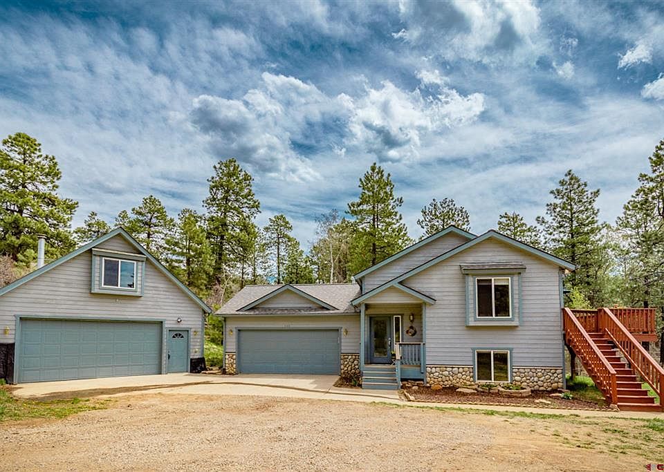 This lovely and wonderfully versatile home with two spacious garages rests on an acre at the quiet end of East Valley View Drive and is just a short walk down the road to 35 acres of BLM in the tall pines full of walking trails, wild turkey and deer. With approximately 350 square feet of living area with in-floor heat above the extra detached garage with wood stove, this unique set-up is perfect for workshop/car/toy storage below and a home office, hobby room, or separate he/she cave above. Plenty of level land to store boats, bikes, RVs, and all your Colorado adventure toys! Oak hardwood floors throughout the kitchen/dining area which opens to a large south-facing deck with Ponderosa Pine and Aspen views for entertaining, relaxing, or watching the kids take advantage of the yard area below. Split floor plan with master and 2nd bedroom upstairs off kitchen/dining area as well as two bathrooms and laundry hookups. Downstairs has a large living area with beautiful new laminate flooring as well as two bedrooms, a full bathroom and additional laundry room. Backyard patio is ready for your hot tub with 220v power. 2 Century Link DSL lines to meet your internet needs for working remotely and gaming. Grab your fishing pole or paddleboard and head down to beautiful Lake Simpatico or the playgrounds and soccer field with the kids. Or, hit the trails to explore the 20k+ contiguous acres of public BLM, Colorado State Forest and San Juan National Forest surrounding the subdivision! Forest Lakes Metro District provides reliable central water, road maintenance, snow removal and other services that can be seen on their website.