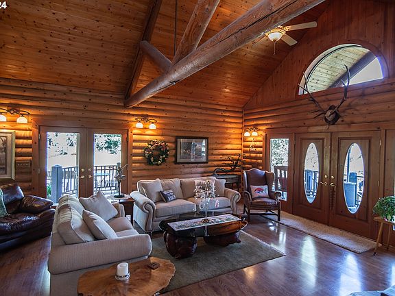 PRIVACY & SECLUSION AWAIT YOU! Unbeatable Dixonville location, completely private & only minutes to Roseburg. This hard to find ranch property offers 2 separate homes on 64+ acres. Bring your horses, sheep or cattle & enjoy the Oregon ranching life! Main home is custom log construction - 3 bedrooms, 3 baths, 2990 sf with living room, family room, efficient wood stove & luxurious primary suite with custom tile walk-in shower, vaulted ceilings & exterior access to the hot tub. Enjoy the beautiful granite kitchen with cook island & custom cabinets. You'll find an additional bonus room, separate office space, spacious patio for outdoor entertaining, covered deck & attached garage with convenient firewood dumbwaiter. The 2nd home is a 2001 built manufactured home with 3 bedrooms, 2 baths, 1026 sf, covered patio, new roof/gutters/paint & plenty of parking. DFN Fiber Optic internet access to both homes as well! You & your horses will love the barn with concrete floors, power, water, custom stall fronts & tack/storage rooms. You'll find 4 complete stalls with water to each & flexibility to add more stalls. Take a ride in the 70x120 year-round outdoor arena or round pen & finish with a trail ride through the trees. The separate tack room next to the arena has power & hot water. The second garage is a 3 bay, 1000 sf workshop with 10 foot doors, power, concrete floors & has room for an RV. You'll find an additional 2688 sf barn/shop with power, water, meat cutting/processing room, hay storage, covered cattle feeding station & welding shop with 220V. Even the chicken coop has water & power! This turn-key setup has 6 separately fenced pastures each with water access & a seasonal pond. Approximately 40 acres of pasture & approximately 20 acres suitable for hay production. Don't miss this opportunity! Includes 460 & 462 Fox Hill Ln. Shown by appointment only, please no drive by's.