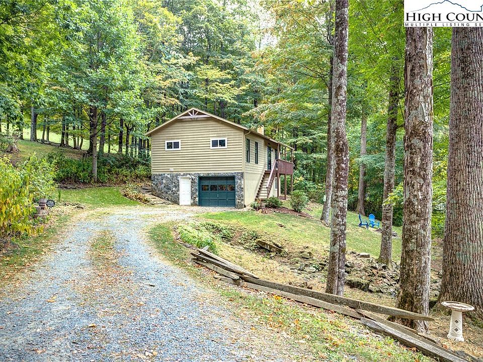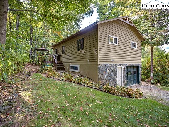 Absolutely adorable home just 15 minutes from Boone on a beautiful lot with a VIEW and a CREEK! You will be pleasantly surprised by this lovely setting and home from the moment you arrive. Easy access on a state maintained road, and level parking either in the one car garage or the abundant gravel parking area with a lovely stone walking path up to the back porch entry. Main level is a simple but spacious ranch style floorplan with two bedrooms and one bath and spacious living, dining and kitchen. You will spend your evenings watching epic sunsets from the front porch or hanging with friends by the fire. Head downstairs to the newly finished basement complete with full bathroom and bonus living area to hang out and play games and enjoy cool evenings by the wood stove. You will absolutely love this charming home, plus no rental restrictions offers plenty of flexibilty and opportunity. Being offered fully furnished minus a few exclusions. Please note that the basement was completed without a permit.