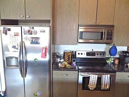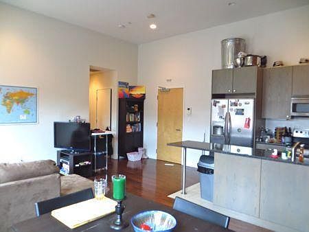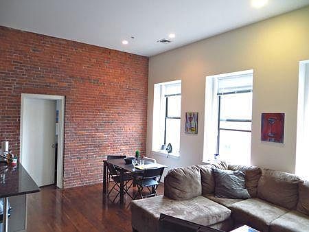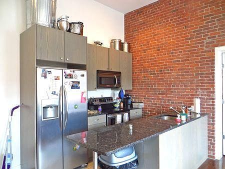 Top Floor, Walnut floors, granite counters w/ stainless steel apps dishwasher, grey wood cabinets, recessed lighting throughout, AC, 2 bathrooms, brick wall accents, huge ceilings, huge bedrooms, tons of closet and storage space, laundry in unit, tons of natural daylight.