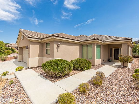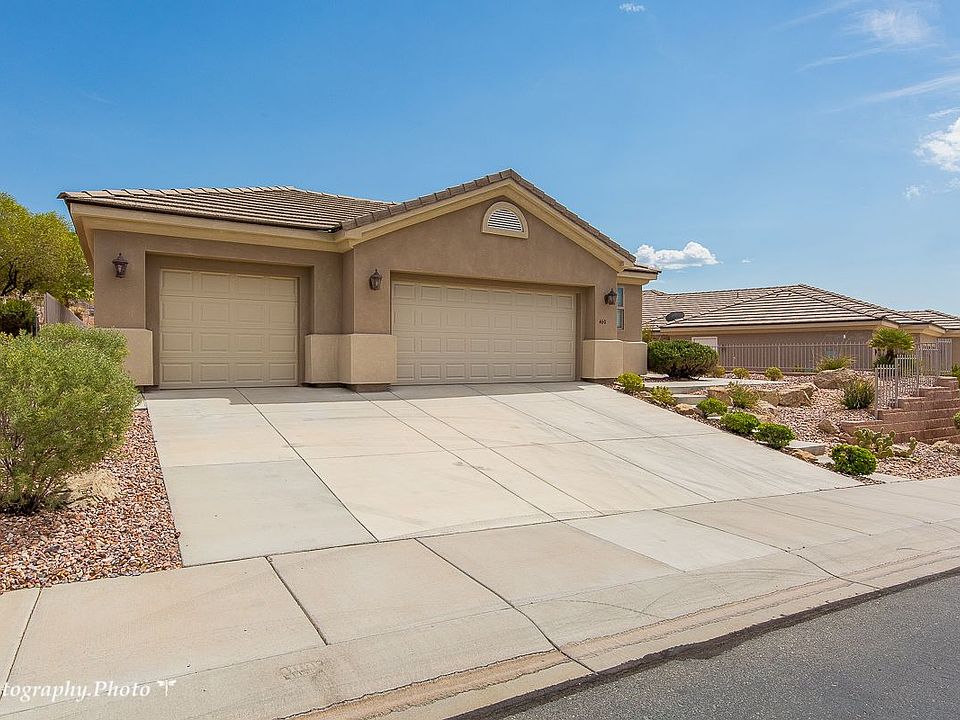 This lovely 1625 sq ft home, situated on almost 1/4 acre in a senior gated community has what everyone wants! A patio with afternoon shade, no walls or houses behind it and room for a pool. A must see! Remodeled and move-in ready. Rooms are spacious, freshly painted, newly carpeted in neutral tones. The kitchen has gorgeous granite counter tops, upgraded tile, and an adjoining large laundry room with sink & cabinets. The large counter in laundry can serve as a desk/computer station with internet ports & electrical outlets to accommodate a phone, computer and printer. Master bedroom is large enough for a king bed set. Twin sinks in master bath and a gorgeous tiled shower absolutely make this room. The large walk-in closet with built-in shelving provides plenty of storage. Talk about storage! The extra deep, 3 car garage is every man's dream. Enough room for cars, toys, golf cart and clubs. The HOA provides full landscape service so more time to play. The desert-scaped yard and Mesquite's low utility rates make this an economical lifestyle for a full-time or snowbird residence. We are 75 miles from Las Vegas, and national parks are within a short drive. Come stay and play!