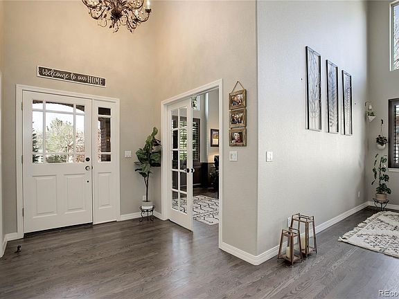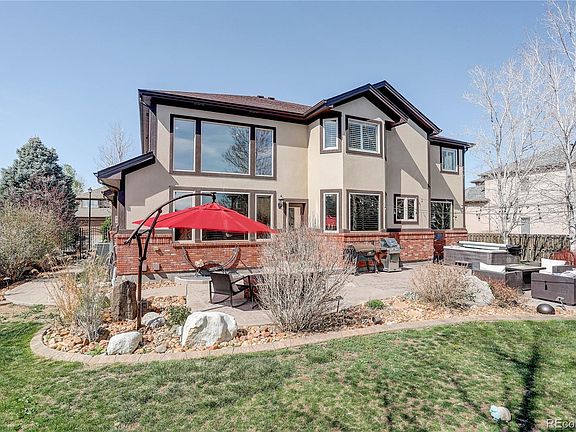 Located in sought-after County Estates neighborhood with no HOA! You will love the access to an abundance of trails, parks, and open space. This custom home boasts sophisticated updates, an abundance of natural light, and an enviable back yard. Upon entering the property, you will be WOWd by the soaring ceilings and the bright, airy ambiance. Plantation shutters and wood flooring throughout the main level. French doors lead to a secluded home office. The floor plan guides you effortlessly through the formal living and dining spaces. Kitchen is outfitted with premium appliances, granite countertops, a large prep island with breakfast bar, and walk in pantry. Outside is an entertainer's delight. Savor Colorado at nightfall from the hot tub or around the wood burning firepit. Meticulously designed laundry and mud room is built to perfection. Ascend to the primary suite highlighted by vaulted ceilings and luxe 5 piece bath with jetted soaking tub. Two secondary bedrooms joined by jack and jill bathroom. Spacious and bright 4th bedroom features ensuite bath. Expansive, unfinished basement is ready for your customization. Hurry in, this ideal property has it all and will not last!
