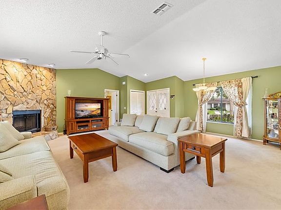 Amazing 3 bed 2 bath corner lot pool home with views of the water and golfcourse; Step inside the open great room with views of pool and water; Enjoy the corner stone fireplace - an ideal spot to relax after a busy day;volume ceilings; flex space offers room for dining, pool table and sitting space; Kitchen is open to great room has a moveable island and sliders to the pool area; pass thru window makes a great bar when entertaining outside; plenty of cabinet space and huge walk in pantry make this a chefs delight; master suite has beautiful views of pond and pool; features high ceilings; plenty of closet space with a walk in and wall and linen closets; the bath has a double wrap vanity with a roman tub; the home features a split plan with the secondary bedrooms down a private hall with a full bath adjacent; the bath has double sinks and access to the outside serving as a pool bath; the bedrooms have ample closet space, 1 with a walk in; the laundry is next door with cabinets and a sink tub; step outside to the oversized sceened lanai overlooking the water and golf course; take in that afternoon cup of tea while enjoying nature; all this in the upscape, highly sought after East Lake Woodlands community offering golf, tennis, swim club, club house newly renovated with fitness center; enjoy the fire pit and much more (addl fees with different memeberships) the location is close to shopping, dining & recreation. You won't want to miss this special home. Other features include side entry courtyard garage! WOW!